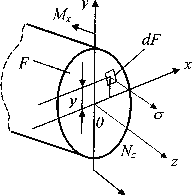 и положение нейтральной оси Ох, от которой отсчитывается координата у. Для определения этих неизвестных воспользуемся уравнениями равновесия статики. Первое выражает требование равенства нулю продольной силы