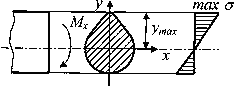 где max Mх— максимальное значение изгибающего момента (легко определяемое по его эпюре),