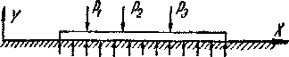 Сплошной нагрузкой для нашей балки является лишь реакция упругого основания. Интенсивность ей пропорциональна прогибам; эта нагрузка направлена вверх, т. е. положительна, когда прогибы идут вниз, т. е. отрицательны, и наоборот. Таким образом, эта нагрузка имеет знак, обратный знаку прогибов: