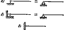 д) Внешние связи не удовлетворяют условиям кинематической неизменяемости. Это — механизм, точнее говоря, мгновенный механизм. Система имеет возможность поворачиваться относительно верхней опоры как жесткое целое Понятно, что угол поворота будет небольшим. Нижняя связь заклинится и будет достигнуто какое-то положение равновесия, но новое положение связей будет зависеть от жесткости системы. К раме неприменимы основные принципы сопротивления материалов: принцип неизменности начальных размеров и принцип независимости действия сил.