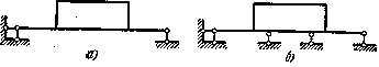 Если, например, на левый конец бруса (рис. 3, а) наложено условие, запрещающее вертикальное перемещение, говорят, что в этой точке имеется одна внешняя связь. Условно она изображается в виде двух шарниров или катка. Если запрещено как вертикальное, так и горизонтальное смещение, говорят, что наложены две внешние связи (рис. 3, б). Заделка в плоской системе дает три внешние связи. Пространственная заделка соответствует шести внешним связям (рис. 3, б). Внешние связи часто, как уже упоминалось, делят на необходимые и дополнительные. Например, на рис. 4, а и б показана плоская рама, имеющая в первом случае три внешние связи, а во втором — пять внешних связей. Для того чтобы определить положение рамы в плоскости как жесткого целого, необходимо наложение трех связей. Следовательно, в первом случае рама имеет необходимые внешние связи, а во втором, кроме того, две дополнительные внешние связи.