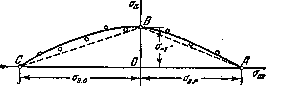 Так как построение диаграммы усталостной прочности связано с весьма трудоемкими испытаниями, предпочитают обычно полученную кривую АВС заменять двумя прямыми АВ и ВС, как это отмечено пунктиром на рис. 2. Рабочая область при этом несколько сокращается, что дает погрешность в запас прочности.