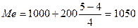 Накопленной частоте, которая равна порядковому номеру медианы или первая его превышает, соответствует медианный интервал. Медиана равна: