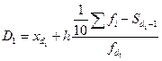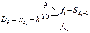 и строят ряд накопленных частот Si=fi+Si-1 (S1=f1).
