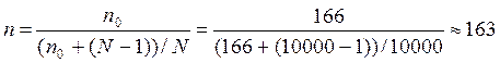 При больших размерах генеральной совокупности n незначительно отличается от n0.