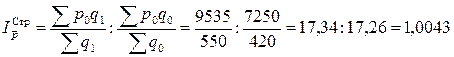 При изучении качественных показателей часто приходится рассматривать изменение средней величины индексируемого показателя для определенной однородной совокупности. Например, в статистических сборниках публикуются данные о динамике средних цен на определенные продукты, средней урожайности зерновых культур, средней номинальной заработной плате в отдельных отраслях экономики и т.д.