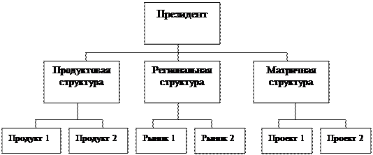 Конгломерат не является установившейся и упорядоченной структурой; он предполагает возможность приобретения всей организацией формы, наиболее целесообразной в той или иной конкретной ситуации. Так, в одном отделении фирмы может использоваться продуктовая структура, в другом — региональная, а в третьем — матричная.
