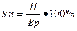 Уровень рентабельности продаж (Уп) определяется отношением величины прибыли к объему продаж, который рассчитывается как разница между выручкой от продаж продукции и НДС и акцизов (Вр):