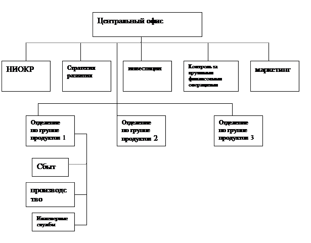 Дивизиональная структура в основном состоит из центрального офиса и отделений. Центральный офис компании решает следующие вопросы: