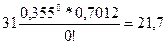 = 0,355 найдем значение e – 0,355 =0,7012. Затем, подставив в формулу (49) значения X от 0 до 3, вычислим теоретические частоты: