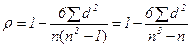 Коэффициенты корреляции рангов – это менее точные, но более простые по расчету непараметрические показатели для измерения тесноты связи между двумя коррелируемыми признаками. К ним относятся коэффициенты Спирмэна (ρ) и Кендэла (τ), основанные на корреляции не самих значений коррелируемых признаков, а их рангов – порядковых номеров, присваиваемых каждому индивидуальному значению х и у (отдельно) в ранжированном ряду. Оба признака необходимо ранжировать (нумеровать) в одном и том же порядке: от меньших значений к большим и наоборот. Если встречается несколько значений х (или у), то каждому из них присваивается ранг, равный частному от деления суммы рангов (мест в ряду), приходящихся на эти значения, на число равных значений. Ранги признаков х и у обозначают символами Rx и Ry (иногда Nx и Ny). Суждение о связи между изменениями значений х и у основано на сравнении поведения рангов по двум признакам параллельно. Если у каждой пары х и у ранги совпадают, это характеризует максимально тесную связь. Если же наблюдается полная противоположность рангов, т.е. в одном ряду ранги возрастают от 1 до n, а в другом – убывают от n до 1, это максимально возможная обратная связь. Подходы для оценки тесноты связи у Спирмэна и Кендэла несколько различаются. Для расчета коэффициента Спирмэна значения признаков х и у нумеруют (отдельно) в порядке возрастания от 1 до n, т.е. им присваивают определенный ранг (Rx и Ry) – порядковый номер в ранжированном ряду. Затем для каждой пары рангов находят их разность (обозначается как d = Rx – Ry), и квадраты этой разности суммируют.