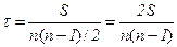 Если же ранги у не совпадают с рангами х, то суммируются все положительные и отрицательные баллы (S=P+Q); отношение этой суммы S к максимальному значению одного из слагаемых и представляет собой коэффициент корреляции рангов Кендэла τ, т.е.: