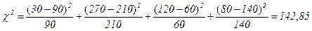 Так, в нашем примере в итоговой строке число заболевших 150 из 500, т.е. их доля – 30%, а доля не заболевших – 70%. Следовательно, теоретические частоты в первой строке для заболевших составят 30% от 300, т.е. 0,3*300=90, а для не заболевших – 0,7*300=210. По второй строке произведем аналогичные расчеты и их результаты занесем в таблицу в скобках.
