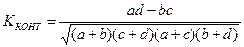 Чтобы этого избежать, предлагается (К. Пирсоном) другой показатель – коэффициент контингенции [53]: