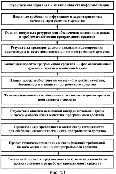 Системное проектирование в программной инженерии охватывает период жизненного цикла сложных комплексов программ, начиная от формулирования первичного замысла на создание или модернизацию системы и до начала детального проектирования и разработки ПС. Результатом этого периода работ должно быть согласованное и формализованное разработчиком и заказчиком представление о целях, назначении, функциональных задачах и качестве будущего программного продукта, способного удовлетворить надежды и запросы пользователей. В системном проекте должны быть обобщены и отражены следующие основные результаты выполненных системных исследований и разработок (рис. 4.1):
