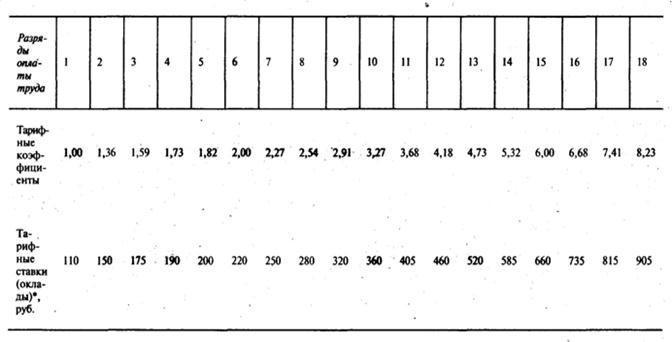 Тарифная сетка [4] – это таблицы с почасовыми или дневными тарифными ставками, начиная с 1-го разряда.