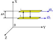 Рис.2.4 | возникают силы внутреннего трения, которые определяются законом Ньютона: , (2.2.21) где – коэффициент внутреннего трения (динамическая вязкость); – градиент скорости (показывает, как быстро меняется скорость при переходе от слоя к слою в направлении, перпендикулярном направлению движения слоев); |