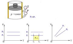 Практически изобарный процесс осуществляется, например, при нагревании или охлаждении газа, находящегося в цилиндре с подвижным поршнем, на который действует постоянное внутреннее давление. Для такого процесса уравнение состояния идеального газа удобно записать в виде