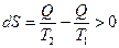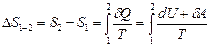2) Приращение энтропии в ходе процесса равно сумме приведенных количеств теплоты при обратимом процессе и больше этой суммы, если процесс необратим
