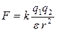Основной закон взаимодействия неподвижных зарядов установлен Кулоном экспериментально. До формулировки закона Кулона введем понятие точечного заряда (аналогично понятию материальной точки в кинематике), заряда, находящегося на теле линейные размеры которого пренебрежно малы по сравнению с расстоянием до других заряженных тел, с которыми этот заряд взаимодействует. Причина этого введения, станет понятной чуть позже. По закону Кулона, сила взаимодействия между двумя точечными зарядами, находящимися в вакууме пропорциональна величинам этих зарядов q1 и q2 и обратно пропорциональна квадрату расстояния r между ними