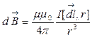 для определения индукции поля, создаваемого элементом тока длиной dl. Форма записи была подобрана так, чтобы при интегрировании из нее получились значения индукции магнитного поля, совпадающие с экспериментальными данными:
