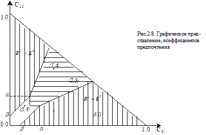, т.е. с большим основанием можно говорить, что Вi предпочтительнее Вl. И наоборот, чем ближе точка к оси ординат, тем Вl предпочтительнее Вi.