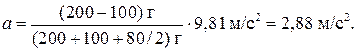 Формула (4) позволяет массы m 1, т 2 и т выразить в граммах, как они даны в условии задачи, а ускорение — в единицах СИ. После подстановки числовых значений в формулу (4) получим