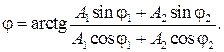 Начальную фазу результирующего колебания можно также определить непосредственно из векторной диаграммы (рис. 6):
