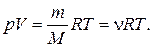 где m — масса газа, М — молярная масса газа, R — молярная газовая постоянная, ν — количество вещества, Т — термодинамическая температура.