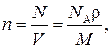 где N — число молекул, содержащихся в данной системе; ρ — плотность вещества; V — объем системы. Формула справедлива не только для газов, но и для любого агрегатного состояния вещества.