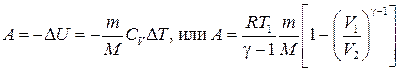 при адиабатном процессе, где γ = сp/сV — показатель адиабаты.