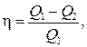 где Q 1 — теплота, полученная рабочим телом от теплоотдатчика; Q 2 — теплота, переданная рабочим телом теплоприемнику.