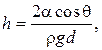 где θ — краевой угол (θ = 0 при полном смачивании стенок трубки жидкостью; θ = π при полном несмачивании); R — радиус канала трубки; ρ — плотность жидкости; g — ускорение свободного падения.