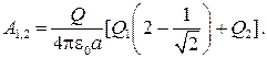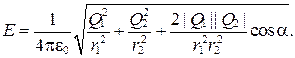 Подставляя выражение E 1 из (1) и Е 2 из (2) в (3) и вынося общий множитель 1/(4πε0) за знак корня, получаем