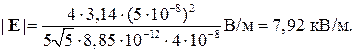 Подставим числовые значения физических величин в СИ (τ=10∙10–9 Кл/м, 1/(4πε0)= = 9∙109 м/Ф) и произведем вычисления: