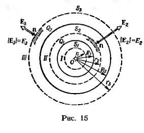 1. Для определения напряженности E 1 в области. I проведем гауссову поверхность S 1 радиусом r 1 и воспользуемся теоремой Остроградского—Гаусса: