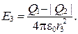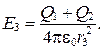3. В области III гауссова поверхность проводится радиусом r 3. Обозначим напряженность ε области III через Е 3 и учтем, что в этом случае гауссова поверхность охватывает обе сферы и, следовательно, суммарный заряд будет равен Q 1 + Q 1. Тогда