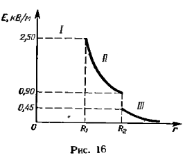 = 0,9 кВ/м. В области III (r 3> R 2) E 2(r) изменяется по закону 1/ r 2, причем в точке r = R 2 (r стремится к R 2 справа) E 3(R 2) =