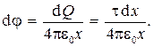 Найдем потенциал электрического поля в точке О. Сначала найдем потенциал dφ, создаваемый точечным зарядом d Q в точке О: