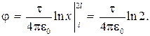 Интегрируя это выражение, найдем разность потенциалов двух точек, отстоящих на расстояниях r 1 и r 2 от оси цилиндра: