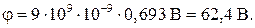 10–19 Кл, τ = 50∙109 Кл/м, 1/(2πε0) = 18∙109 м/Ф) и произведем вычисления (1/(1,60∙10–19) — коэффициент перевода из Дж в эВ):