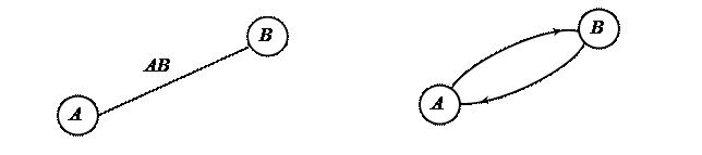 Автомагистраль или воздушная линия с двусторонним движением транспортных средств описывается не ориентированным графом или ориентированным графом с двумя дугами, имеющими разное указанное направление движения (Рисунок 3).