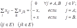 Это соотношение говорит о том, что чистый поток равен нулю для каждого узла сети, кроме пункта отправления и пункта назначения. Поэтому данное соотношение носит название условий непрерывности потока в сети.