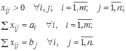 единиц соответственно, и n -пунктов потребления продукта, у которых существует потребность в продукте в объемах