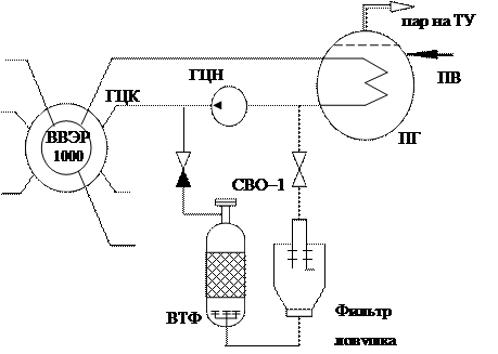 Система байпасной очистки теплоносителя первого контура (СВО-1) предназначена для очистки теплоносителя первого контура от нерастворимых, мелкодисперсных продуктов коррозии, находящихся во взвешенном состоянии, таких как 59Fe, 60Co, 90Sr, 58Ni, 54Mn, и т.д.