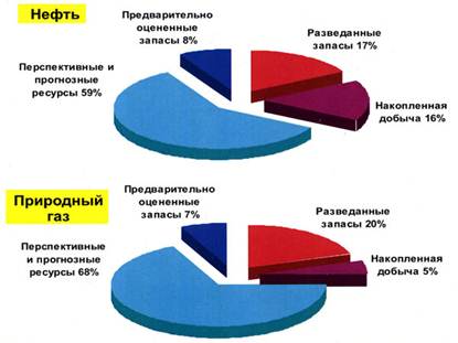 На рис. 1.8. показано распределение по степени освоения ресурсов нефти и природного газа в нашей стране.