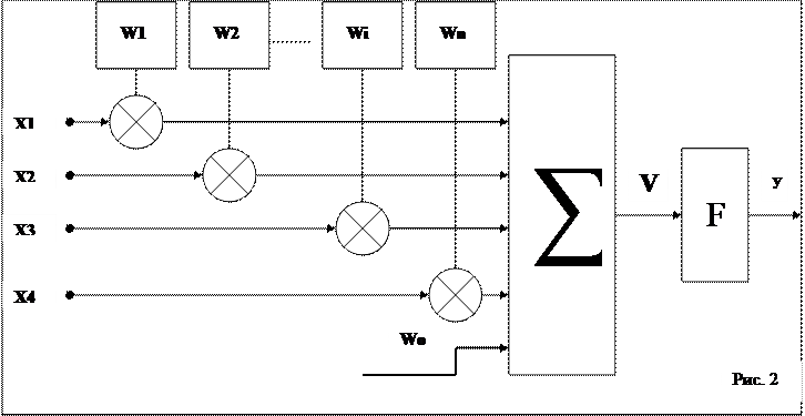 Модель искусственных нейронов представленные на Рис.2 можно выделить 3 основных элемента: