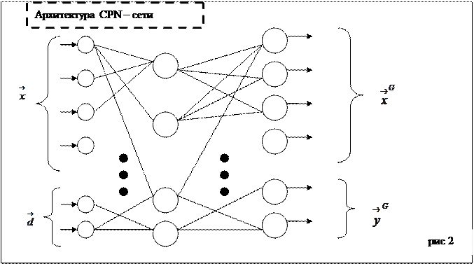 После обучения нейросети формируются выходные сигналы, которые соответствуют входным сигналам. CPN – сеть имеет 2 слоя с последовательными связями: