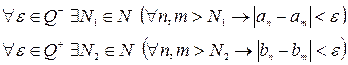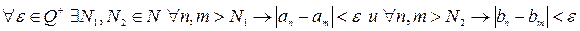 Теорема 2. Сумма, произведение и разность сходящихся последовательностей рациональных чисел является сходящейся последовательностью.