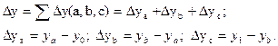 Δуc = ½ Δс· (ао b1+ а1 b0)+ 1/3 Δа· Δb ·Δс.